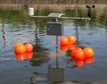 Accordingly the parameters wind speed, humidity and temperature of the air at 1 m level as well as the water temperature directly under the surface are measured and processed by this instrument.